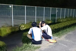 コートに二人を捜しにいくと、夜風が吹く寒い中、「子供への接し方」についてお互いの考え、気持ちを熱く熱くぶつけ合っていました。