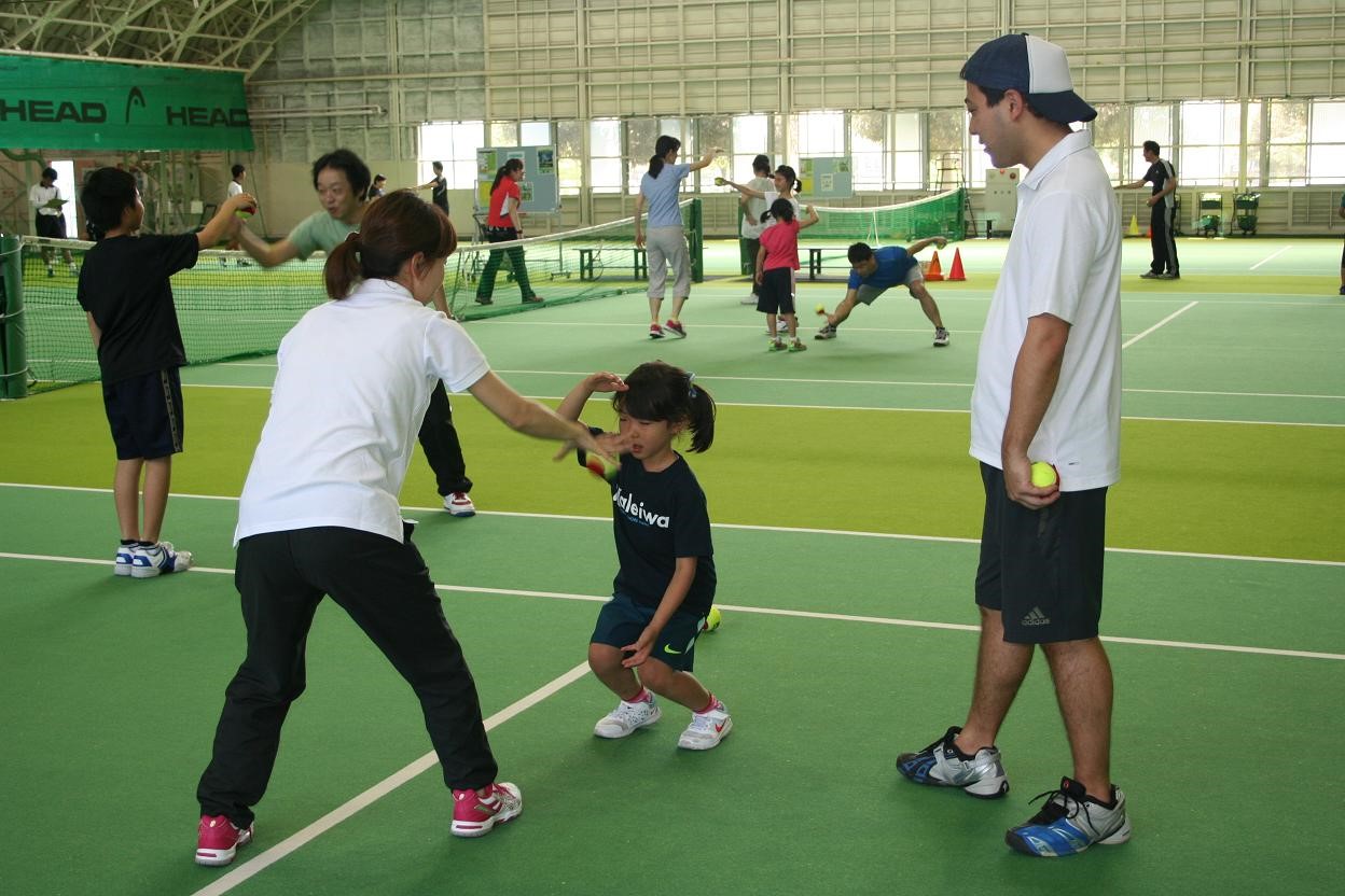 身体も心もほぐれてきた(疲れてきた!?笑)ところで、大人と子供でコートに分かれてレッスンを行いました!