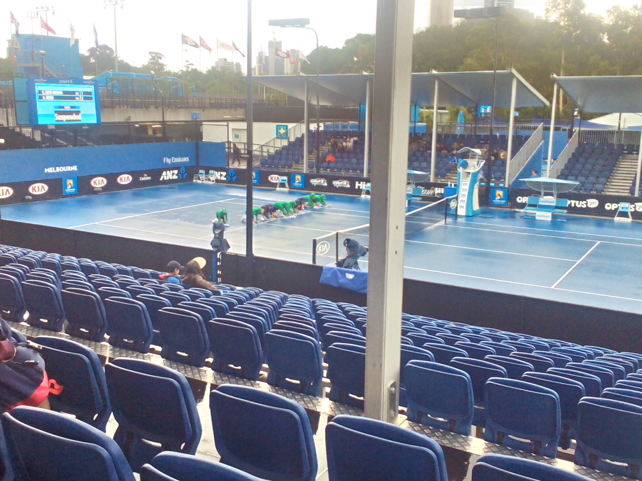 今は雨がほぼ止んだので、ボールパーソン達が