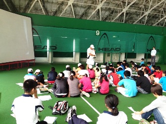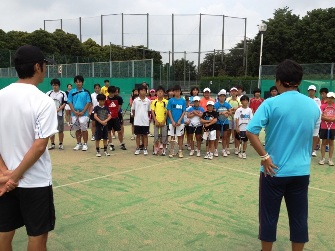 土曜日のイベントの1つは亜細亜大学、森稔詞コーチと亜細亜大学の学生によるテニスレッスンです。