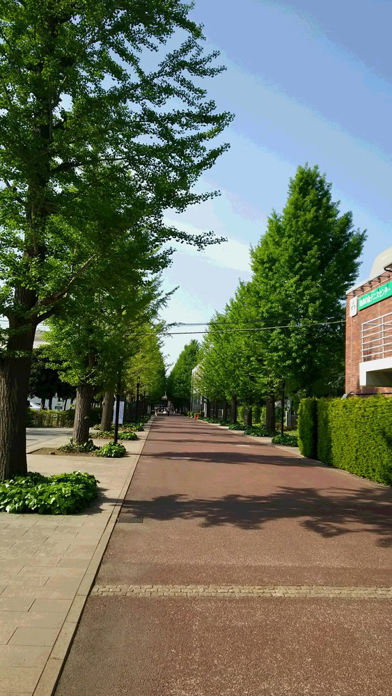 スクールの前にある銀杏並木も木陰ができるくらい緑濃くなりました。