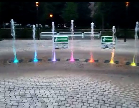 前にブログにかいた銀杏並木にある噴水です。だんだん色が変わり、踊り始めます。