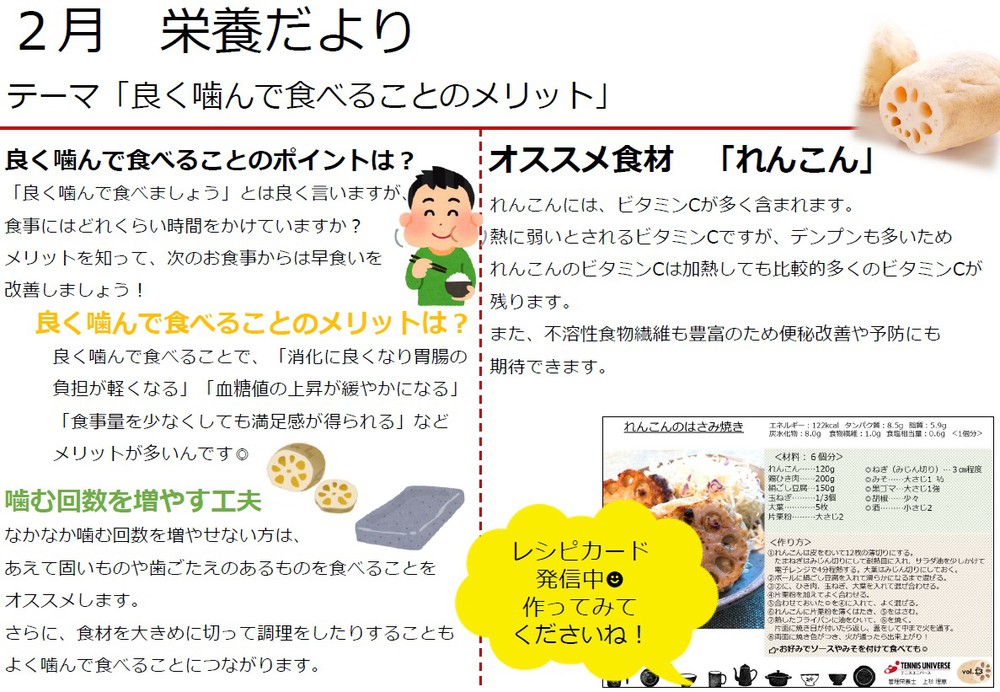 今月の栄養だよりのテーマは「良く噛んで食べることのメリット」
