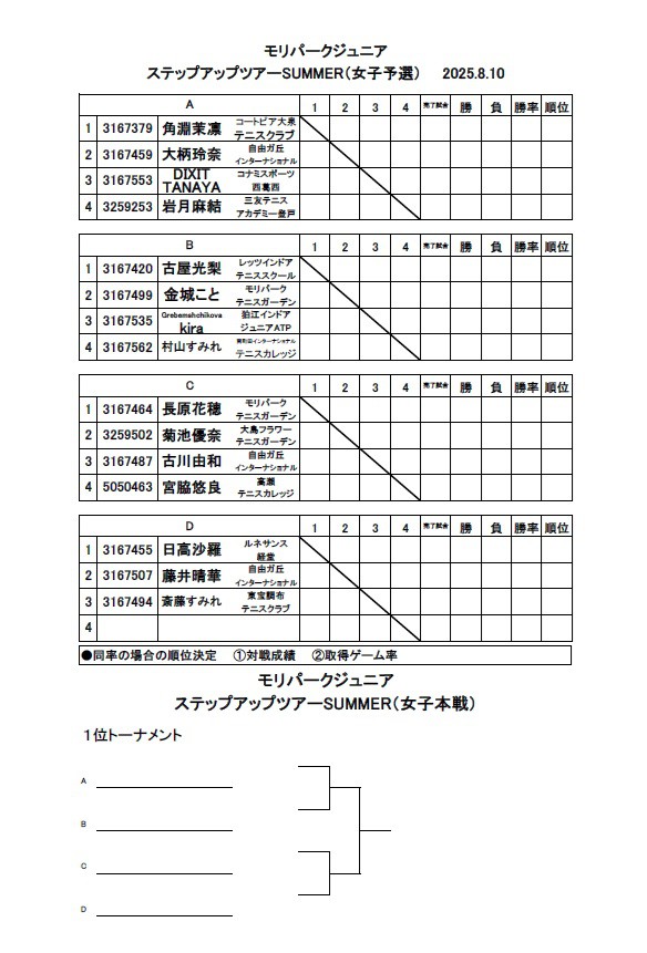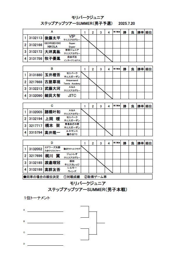 2025モリパーク ジュニア『ステップアップツアー』SUMMER ドロー(7/11発表)